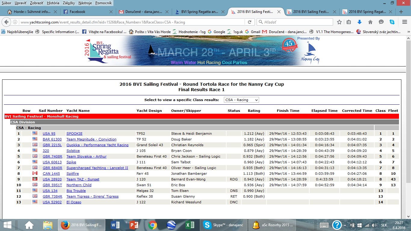 Miesto a dátum : Nanny Cay Tortola (IVB), 29.03.2016